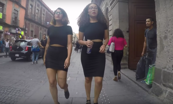 En el video vemos a las jóvenes vestidas de negro caminando por algunas calles del centro de la Ciudad en donde varios acosadores les gritaban insultos, piropos y comentarios del mal gusto.