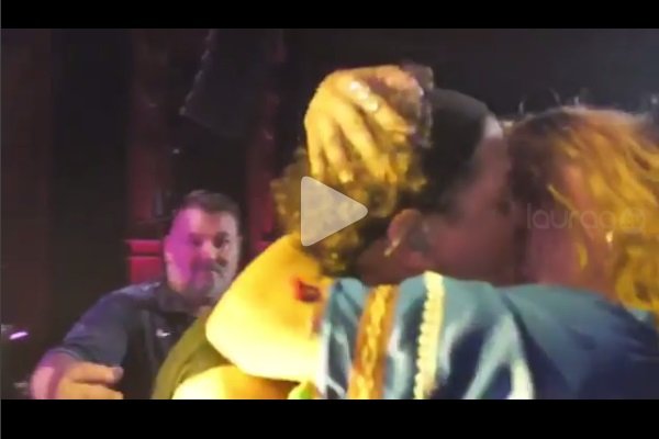 Un vídeo que ya circula por la web muestra el momento en el que una chica rubia corre a los brazos de Vives y después de eso lo besa ante el grito de los asistentes.