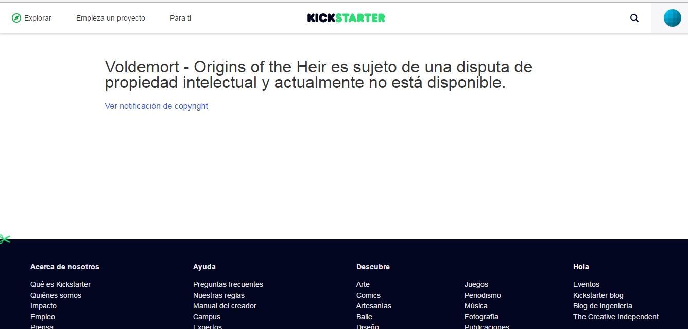 A tan solo 48 horas de haber lanzado el tráiler de ‘Voldemort: los orígenes del heredero’, la película atraviesa por problemas legales, debido a que los creadores apuntaron este proyecto a la plataforma Kickstarter, donde conseguían fondos para finalizar la realización, pero ya se cerró esta campaña porque le pertenecen los derechos de autor a la productora.