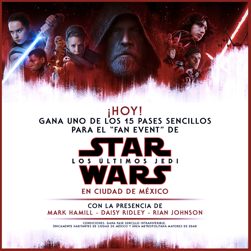 Hace unas horas a través de la página oficial de ‘Star Wars’ de México, se dio a conocer una dinámica para poder estar conviviendo con Mark Hamill, Daisy Ridley y el director Rian Johnson, el cual se llevará a cabo el próximo 20 de noviembre. No se preocupen, en caso de no poder asistir, se realizará una transmisión oficial presentada por Samsung Mobile MX.