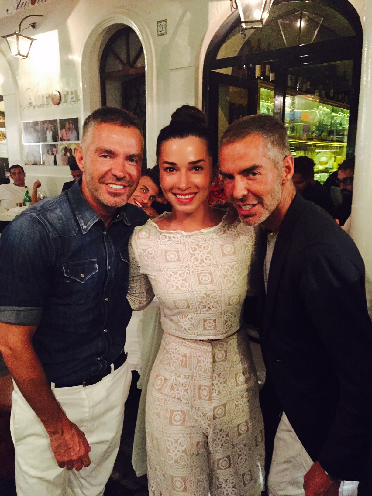 Una noche cenamos en “La Aurora”, al lado de nosotros estaban los gemelos canadienses Dan y Dean Caten, famosos diseñadores de la casa “Dsquared2”. Muy agradables, se pusieron a platicar con nosotros de nuestro querido México y disfrutamos de una gran cena.