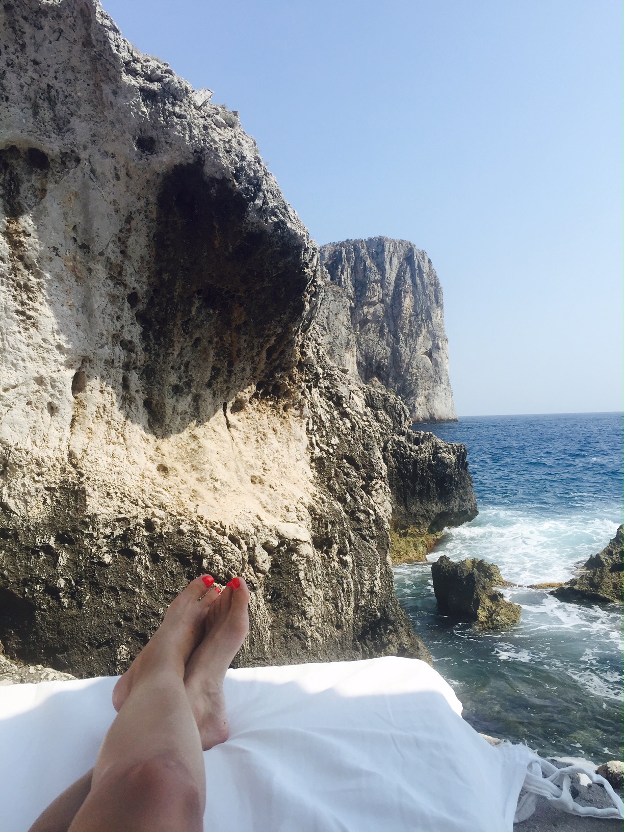 Tiene una de las mejores vistas que he podido admirar en mi vida, su acantilado es precioso. Nuestro hotel “Cucumbela” fue una gran elección ya que está rodeado de los mejores jardínes en Sorrento. Y aunque las playas europeas no se caracterizan por el mejor servicio, en donde hay una piedra ellos echan su toalla y se ponen como focas en el sol.