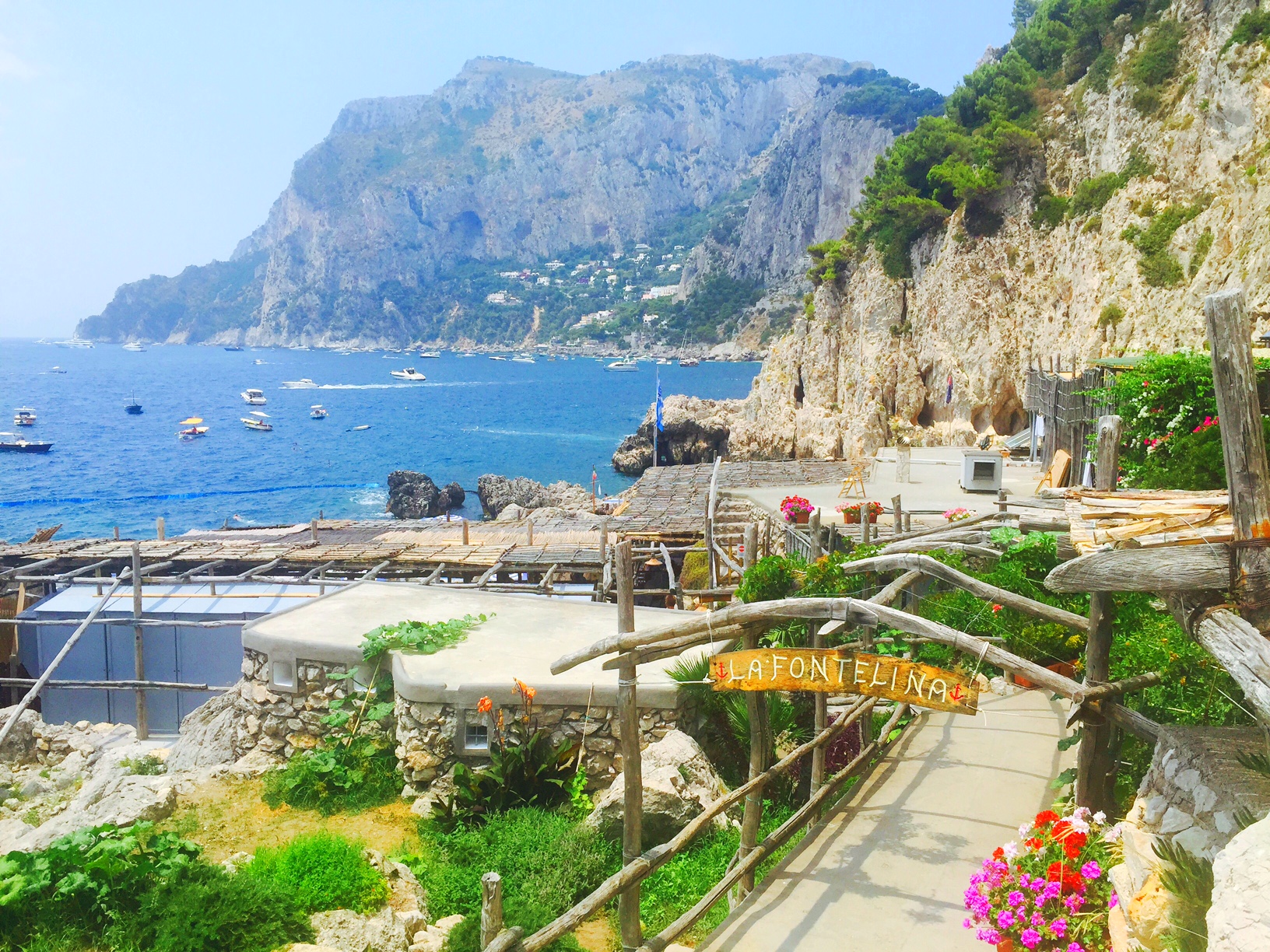 De mis lugares favoritos fue “La Fontelina” un club de playa en donde se puede comer delicioso y tomar el sol. ¿Llegar? -¡Un problema!… Hay que bajar la Certosa di San Giacomo y sufres mucho, pero vale la pena. Ni hablar de la comida y el vino que puedes consumir. ¡Llevo 3 kilos arriba!. A este club también puedes llegar en tu yate jajajaja, o rentar un bote, seguido de un taxi que te dirija a tu hotel.