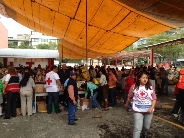 Ayer fui a la Cruz Roja de Polanco a entregar algunas cosas que compré, había filas para poder llegar al centro de acopio, adentro cientos de voluntarios organizaban las cosas para poder mandarlas: atún, frijoles, arroz, entre otras cosas se empacaban en cajas y salían los camiones. Me dio tremenda alegría saber que a los mexicanos no nos vale ver a nuestros hermanos devastados. Que por más que algunos dicen ” para que, si no se les va a entregar”, llegaban las familias con fe de que lo que aportaban llegarían a su destino final.