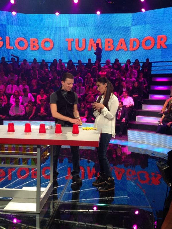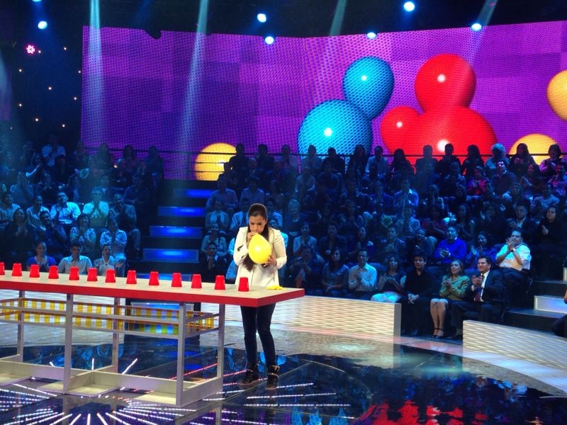 Sólo sabía que tenía que ir cómoda para poder moverme por el escenario sin ninguna dificultad, pero no sabía que concurso me iba a tocar. 30 minutos antes de empezar la grabación  me pasaron a un camerino en donde la producción preparaba todos los retos. Comencé a sudar y a ponerme muy nerviosa, ya que nunca he sido buena en eso de los concursos. Cuando empecé a practicar el de los lápices sabía que lo iba a lograr, pues sin presión era fácil. Muy segura llegué al foro después de haber practicado como 10 retos en tan solo 30 minutos. ¡Ay ajá! La huerca segurísima de que iba a conseguir mucho dinero para apoyar a Margarita Piña con su labor de ayudar a los perritos de la calle.