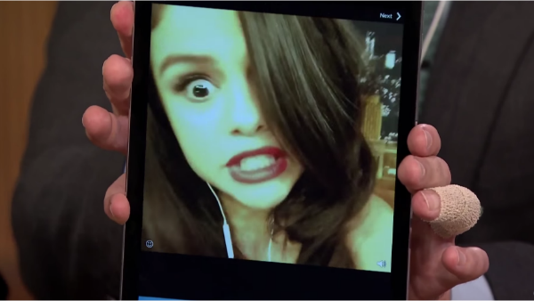 A través de un mini video la cantante aparece junto a su equipo de trabajo bailando y cantando una canción que a todos les alegrará la tarde, pero no sólo eso, Ariana comienza a agarrar los pechos de una de sus asistentes, mientras que luego de un tiempo esa misma asistente toma con sus manos los senos de la cantante y hace un movimiento con la cabeza entre las boobies de la cantante.