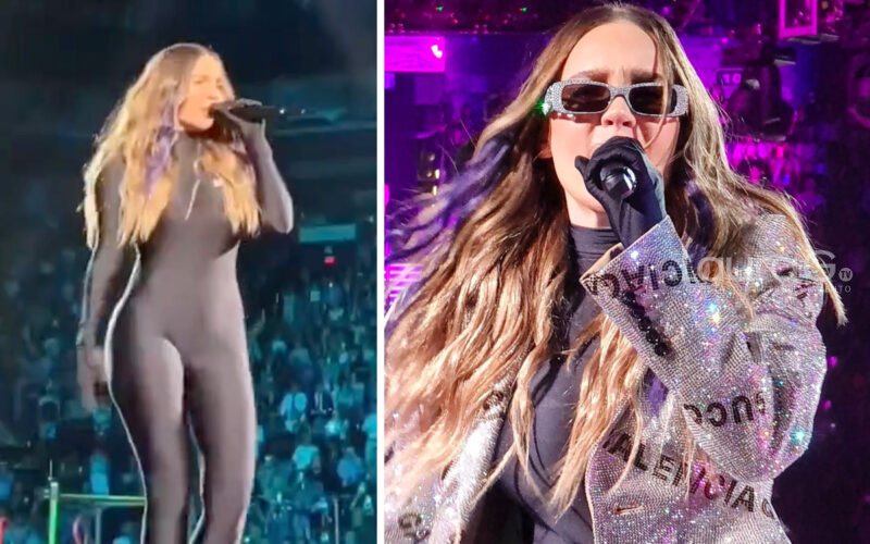 El concierto se llevó a cabo en la Arena Monterrey y Belinda utilizó un ajustado jumpsuite color negro que dejó en evidencia su estilizada figura al cantar temas como “Lo siento”, “Bella traición” y “Vivir”. Además cautivó a todos con una entrada tocando la batería.
