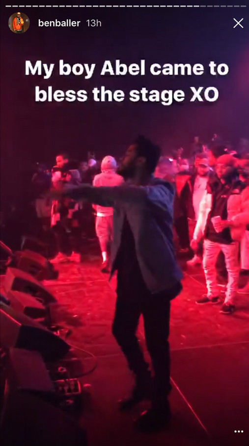 Ya que uno de sus mejores amigos, el joyero Ben Baller, quien pasó toda la noche junto a Kendall y Bella, publicó un snapchat que dejó a todos en duda de que fuera él quién escribió junto a la foto del rapero:”Mi chico Abel vino a bendecir el escenario”.