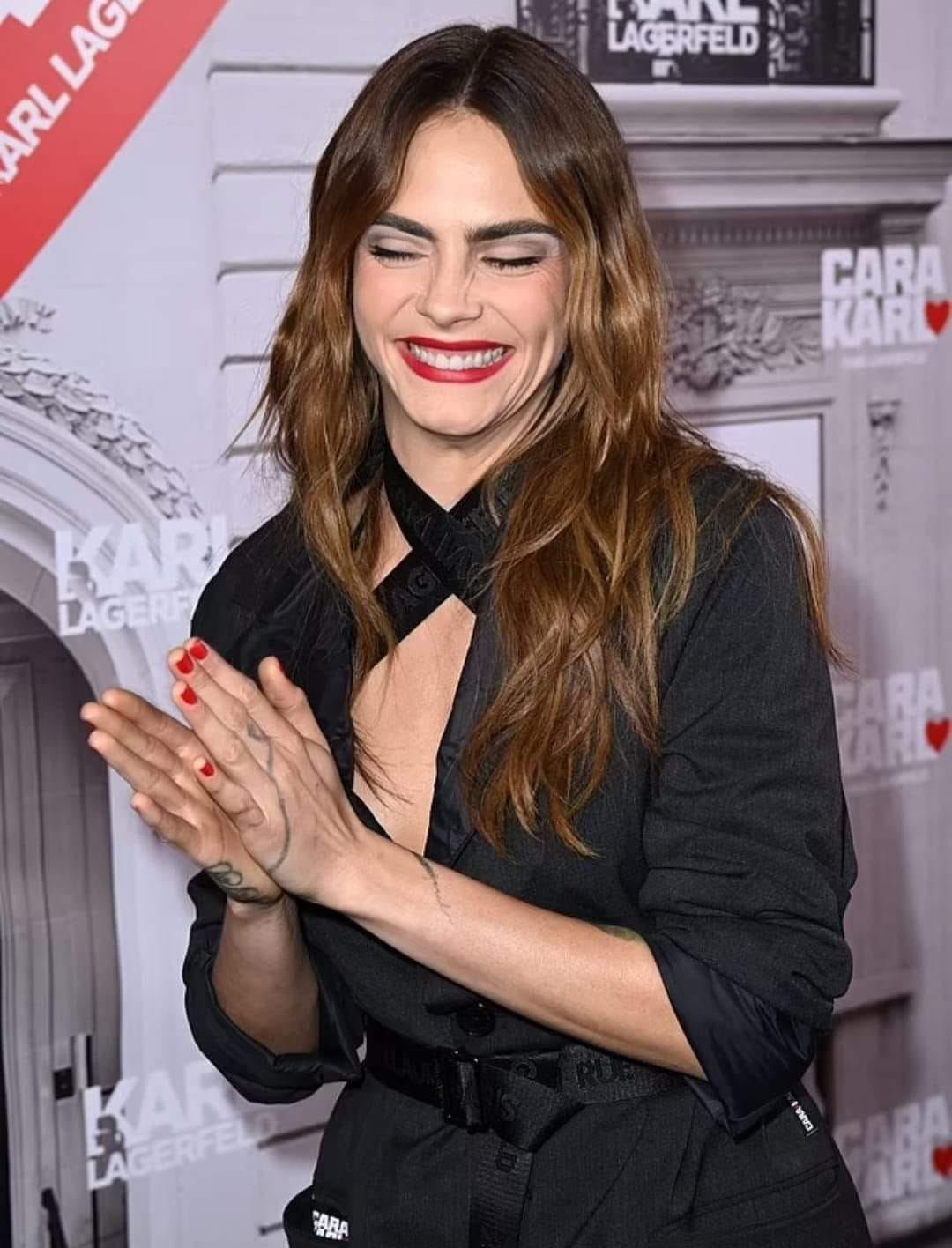 Fue durante la Semana de la Moda en París donde hizo su reaparición en un impactante look completamente negro con prendas de su línea de ropa ‘Cara Loves Karl’ que lanzó en honor a Karl Lagerfeld, uno de sus diseñadores favoritos.