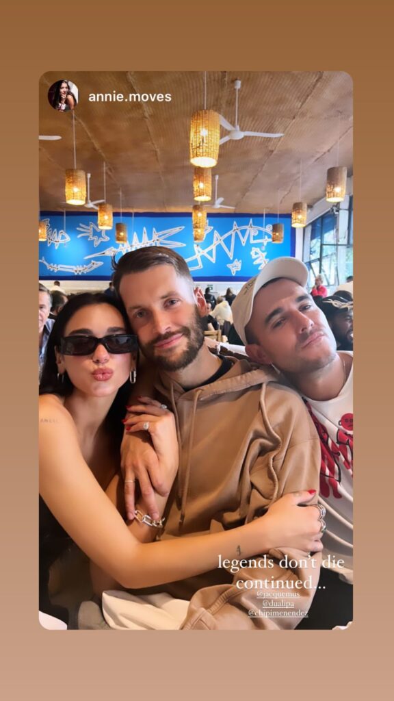 También acudió a otro restaurante ubicado en la Roma, en Avenida Álvaro Obregón número 65 y ahí no dudó en convivir con algunos fanáticos. Y también estuvo en el restaurante Contramar donde asistió con su equipo y con Simon Porte Jacquemus.