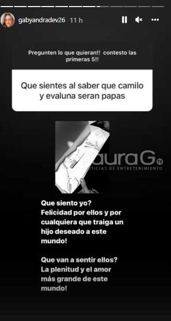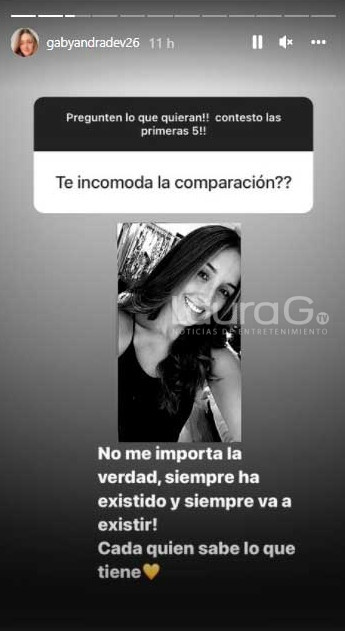 Aunque la cantante, no ha reaccionado a estos comentarios, quien sí se ha pronunciado al respecto es Gabriela Andrade Vélez, quien a través de sus historias breves de Instagram realizó una dinámica en la que respondió a sus seguidores algunas preguntas que le realizaron.