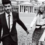 Zayn de 23 años aparece como el caballero perfecto, mientras que la guapa Gigi de 20 años, luce espectacular con modelos que incluyen algunos diseños de Victoria Beckham.