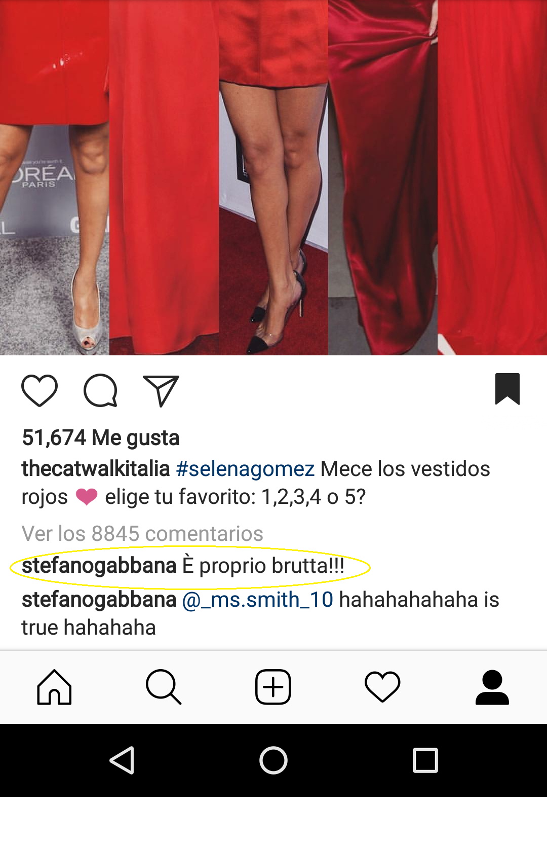 En la cuenta de ‘The Catwalk Italia’ el cofundador de la marca Dolce & Gabbana escribió “È proprio brutta!!!” lo que quiere decir en español “Es tan fea”.