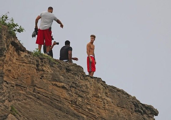 Ahora que se encuentra vacacionando Justin Bieber saltó de un peñasco en Hawái, y las imágenes del momento en que el cantante se lanza al mar están causando revuelo en internet.