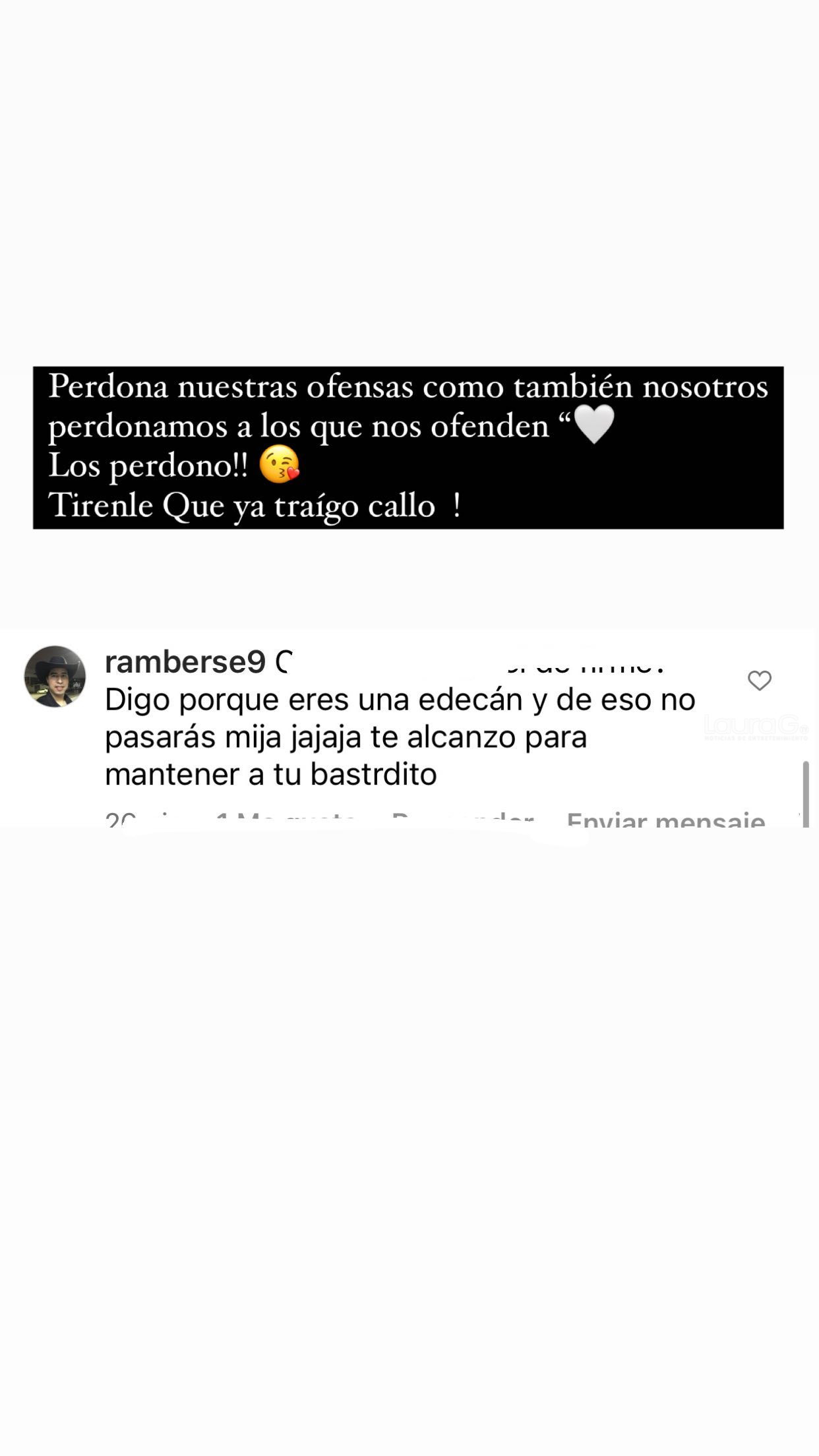 El primer mensaje que compartió fue después de recibir un mensaje ofensivo, pero lo resolvió de la mejor manera. Además agregó que no emitirá ninguna palabra al respecto ya que no busca aprovecharse de la situación y no le interesa.