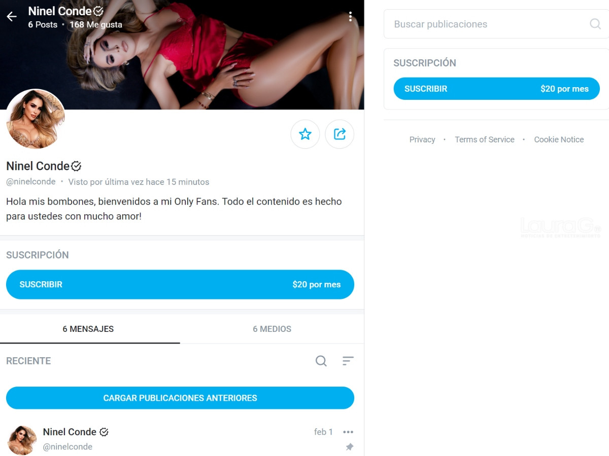 La suscripción de Ninel Conde está en 20 dólares al mes, que equivale a poco más de 400 pesos mexicanos al mes, por el momento cuenta con 6 publicaciones y 168 ‘me gusta’.