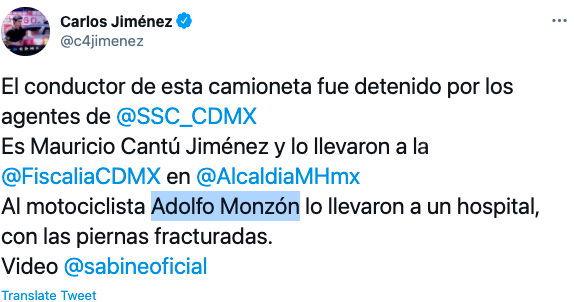 Hace unas horas, Sabine Moussier utilizó sus redes sociales para denunciar a dos personas que viajaban a exceso de velocidad sobre Paseo de la Reforma y quienes atropellaron a un repartidor.