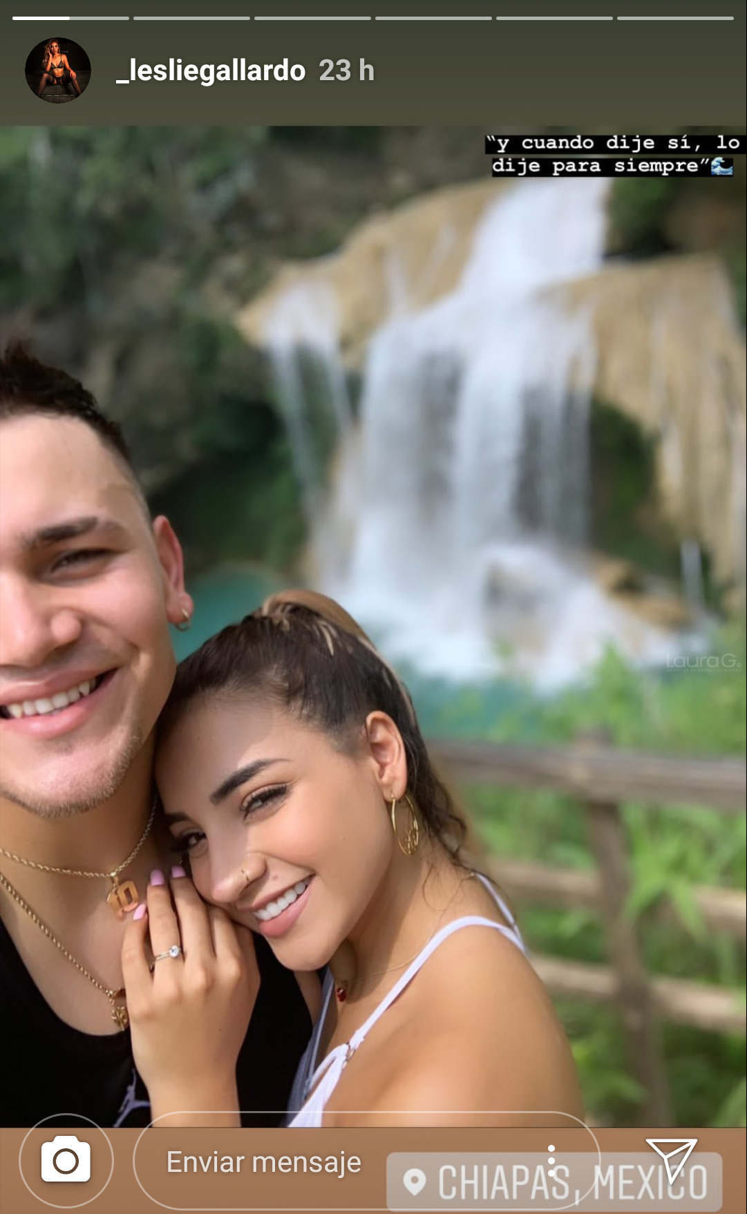 A casi un mes de colgar su primera fotografía juntos, la sexy modelo acaba de revelar que su novio le propuso matrimonio, esto durante su viaje a Chiapas. (Leer nota completa AQUÍ).
