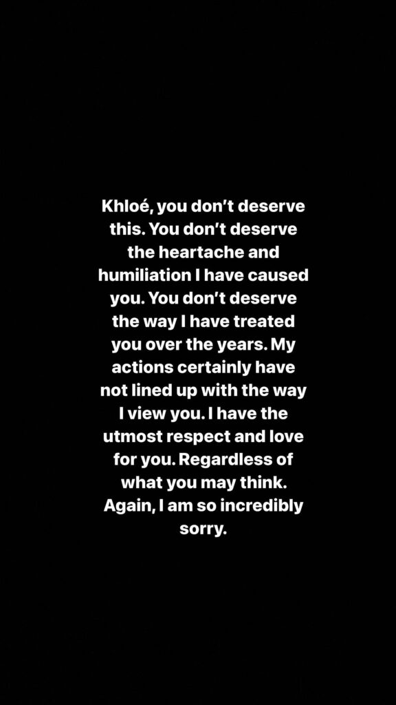 Por medio de sus historias breves de su cuenta verificada de Instagram, Tristan Thompson realizó el anuncio de su paternidad, aceptando su responsabilidad y además se disculpó de manera pública con Khloé Kardashian.