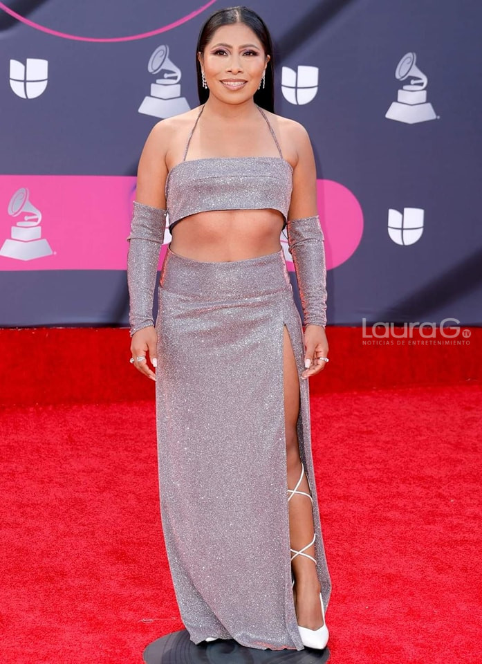 Yalitza, compartió el escenario con Becky G para la entrega del premio, se ha dado a conocer que el conjunto plateado que utilizó es de la diseñadora Lorena Saravia.