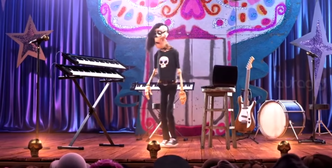 Es en la escena del más allá,  donde aparece, en la que los muertos hacen una competencia de talentos para acudir a una fiesta privada con el ídolo del momento y ahí es donde muchos usuarios de la web afirman que se trata de Sid.