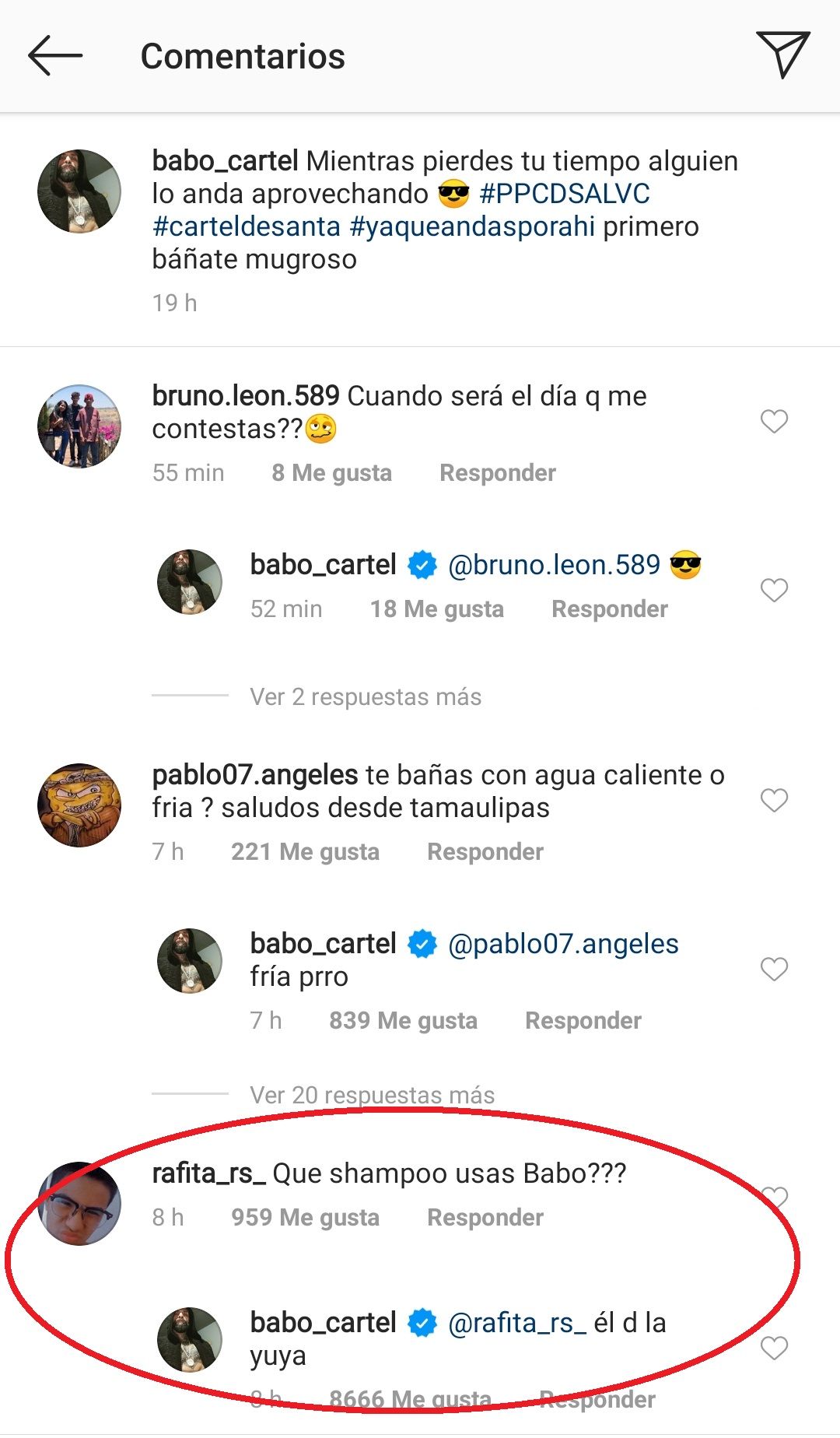 Todo comenzó por esta fotografía en la que Babo aparece tomando una ducha junto al siguiente mensaje: “Mientras pierdes tu tiempo alguien lo anda aprovechando 😎 #PPCDSALVC #carteldesanta #yaqueandasporahi primero báñate mugroso”.