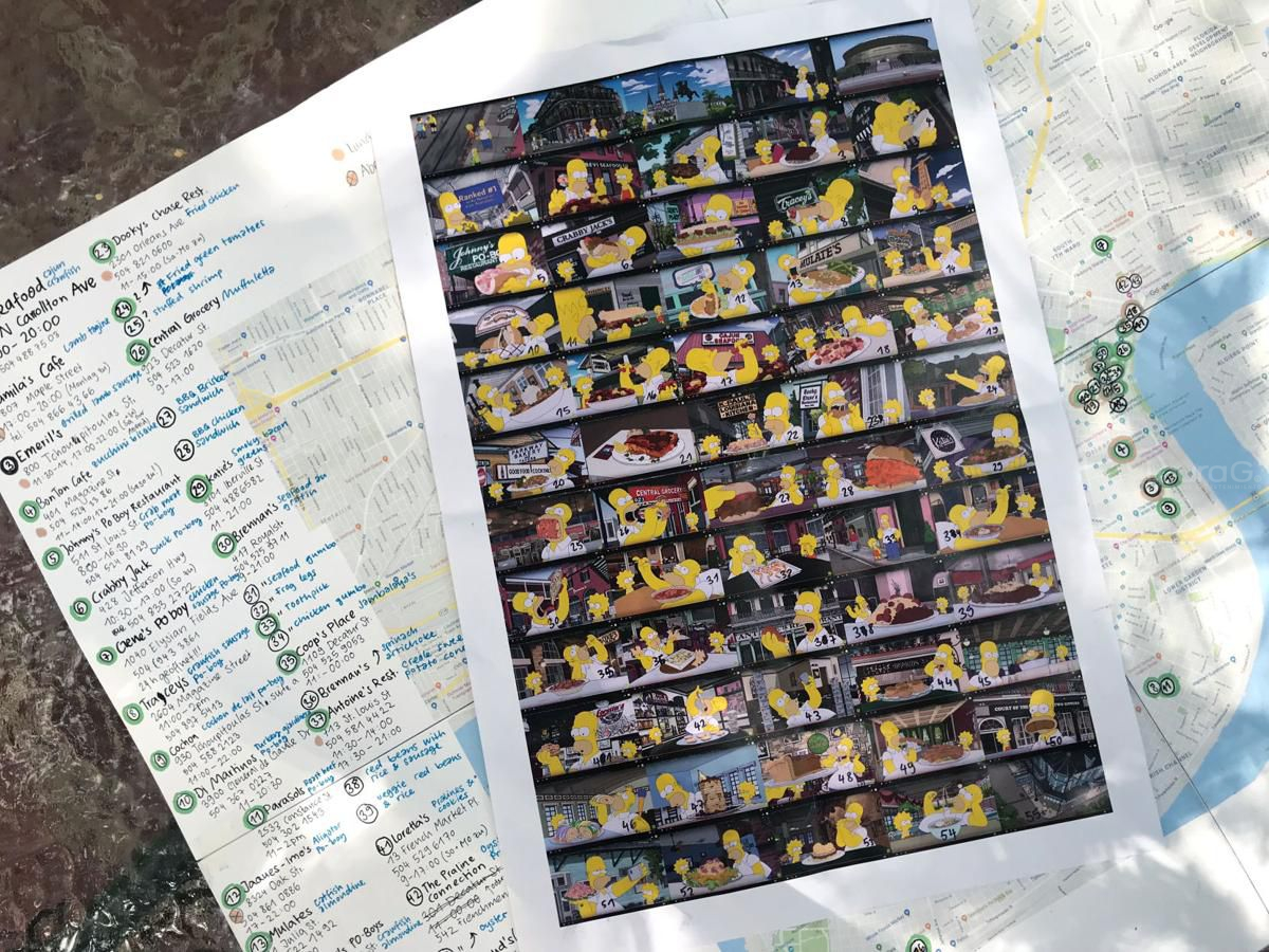 Sin embargo, aunque suena un plan corto y sencillo, el tiempo que ambas turistas tenían no era suficiente, por lo que, imprimieron todas las escenas del capítulo y marcaron todos los restaurantes que Homero visitó para ubicarlas en un mapa y llegar a ellos.