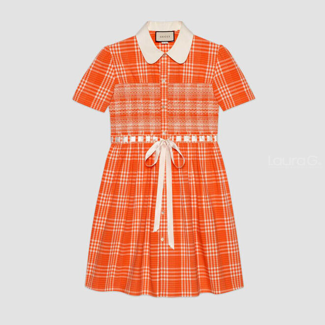 Se trata de una camisa larga de algodón con estampado de cuadros escoceses en color naranja, diseño que está inspirado en el look grunge de los años 90’s que leva botones de nácar y cuello de Peter Pan pero hay otro diseño en estampado floral a un precio un poco más accesible.