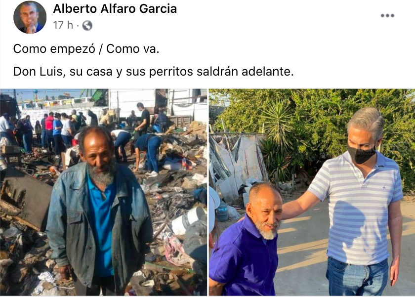 La historia llegó hasta el regidor de la entidad, Alberto Alfaro García, quien junto con vecinos limpiaron el terreno baldío donde vive y lo llevaron al doctor, dentista y hasta le dieron asilo en una casa temporal con ropa nueva, en lo que terminaban de limpiar su actual hogar.