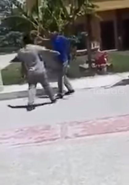 Un vídeo que circula en la web muestra cómo un profesor decide intervenir en una fuerte riña entre dos de sus estudiantes, así que para separarlos los golpeó con su cinturón.