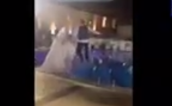 Mientras la fiesta se encontraba en su apogeo, los invitados incitaron a la pareja a lanzarse a la alberca que se encontraba en el centro del salón en Beirut, Líbano.