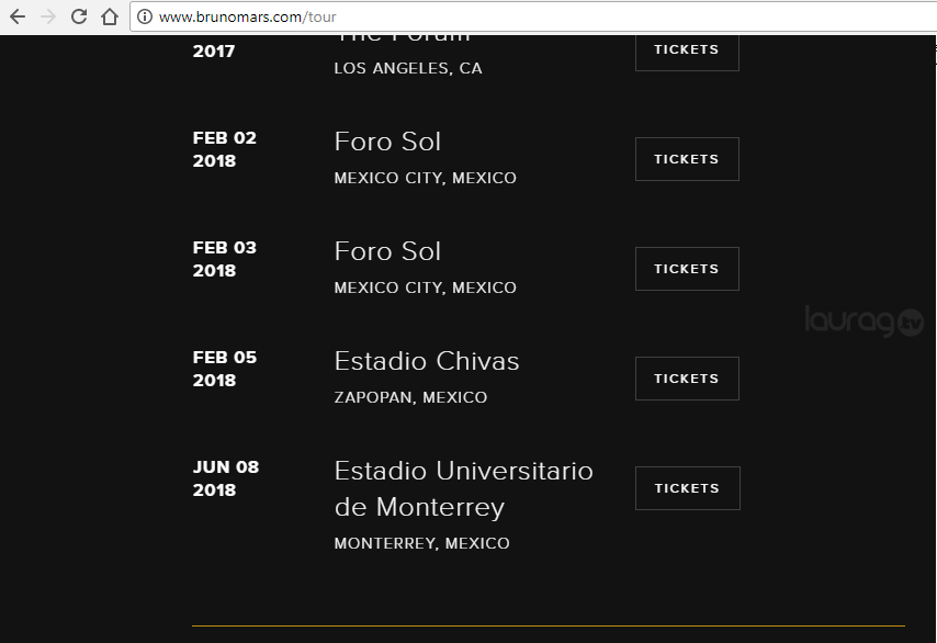 Actualmente Bruno Mars se encuentra realizando su gira ‘The 24K Magin World Tour’ y la cual llegará a nuestro país en febrero con cuatro fechas, en la Ciudad de México, Jalisco y Monterrey.