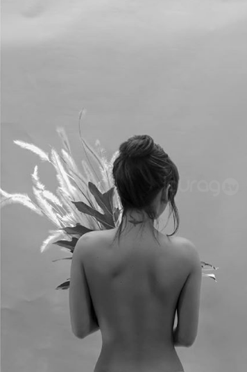 En una fotografía en la que aparece topless y abrazando un jarrón de barro escribió: “Dejar el alma respirar a flor de piel”.