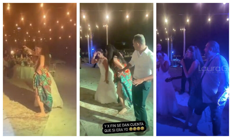 La cantante entró a la pista de baile para cantar “Bandido”, mientras los invitados cantaban y bailaban, sin percatarse que se trataba de la verdadera Ana Bárbara, pasaron unos minutos para que la novia reconociera a la famosa y le agradeciera cantar en este momento tan especial.