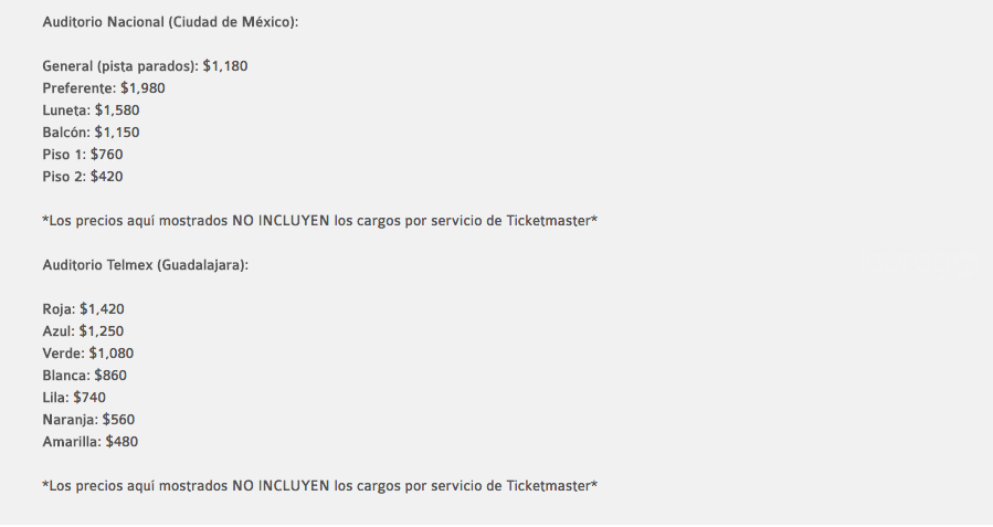 La preventa iniciará el próximo 14 y 15 de agosto solo para tarjetahabientes Citibanamex y al público general el 16 de agosto. Aquí los precios: