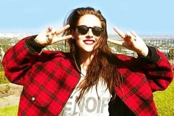 En la instantánea podemos ver a la actriz en un bikini verde, que deja al descubierto su pancita de embarazo, junto a ella aparece la mascota de la familia.