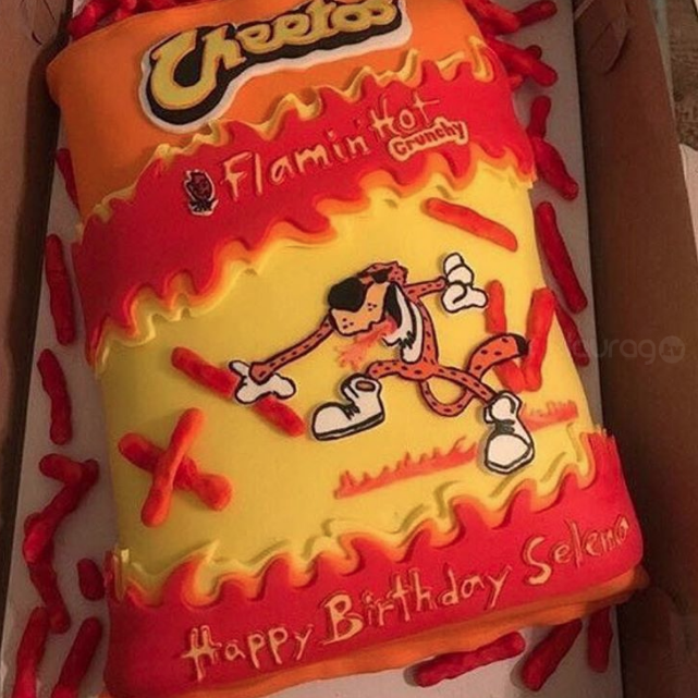 Uno de sus pasteles fue inspirado en una bolsa de Cheetos ‘hot’ y sin duda se divirtieron en grande y durante toda la noche no faltaron las carcajadas.