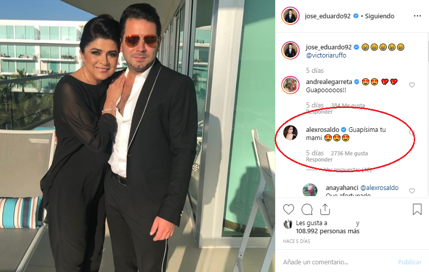 Recientemente José Eduardo Derbez colgó una fotografía a través de su cuenta de Instagram junto a su mamá Victoria Ruffo y causó revuelo en la plataforma cuando Alessandra Rosaldo, la esposa de Eugenio Derbez comentara la imagen.