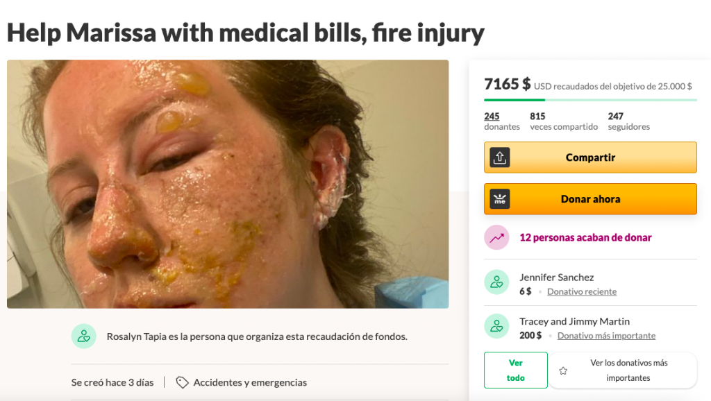 Hasta este momento ha podido recaudar 7 mil dólares de los 25 mil a través de GoFundMe que necesita para poder salir de este trago amargo.
