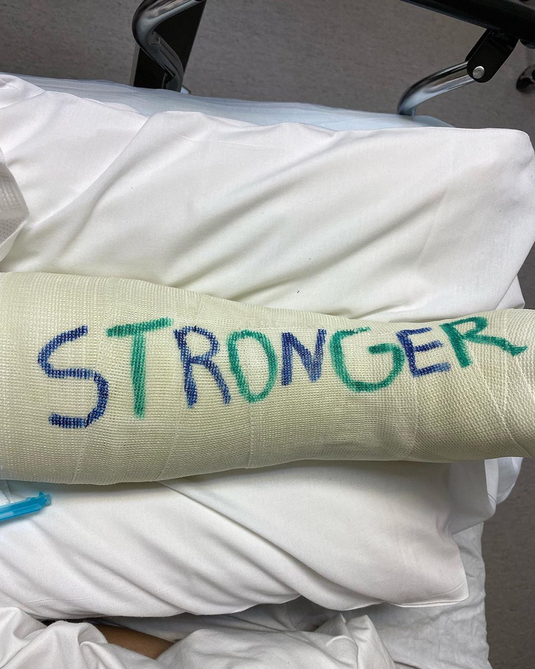 “Cuando rompes algo, tiende a sanar más fuerte, especialmente cuando eres mi chica, mi leona se rompió el hueso metatarsiano en el pie haciendo lo que ama, que es bailar, deseándole la mejor recuperación para que pueda saltar, correr y bailarla despegar. #stronger”, escribió como descripción de la publicación que incluye una selfie, un vídeo en la que le escribe la palabra “stronger” que significa más fuerte y posteriormente otra imagen