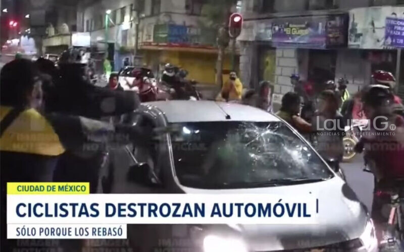 En las imágenes es posible ver que los ciclistas comienzan a golpear ventanas, parabrisas, e incluso intentan agredir al conductor; sin embargo, uno de los ciclistas trata de calmarlos sin éxito.