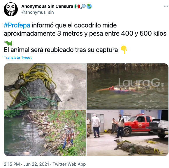 Luego de esto, la Procuraduría Federal de Protección al Ambiente informó que el cocodrilo que mide aproximadamente 3 metros y pesa entre 400 y 500 kilos será reubicado, tras ser capturado.