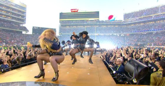 La cantante, liberó un día antes del espectáculo su nueva canción ‘Formation’, y compartió un video cargado de información política. Al entrar aparecer en el estadio, Beyoncé, quien vestía con una chamarra de piel en honor a Michael Jackson, sin duda resaltó sobre las canciones “indie” de Coldplay.