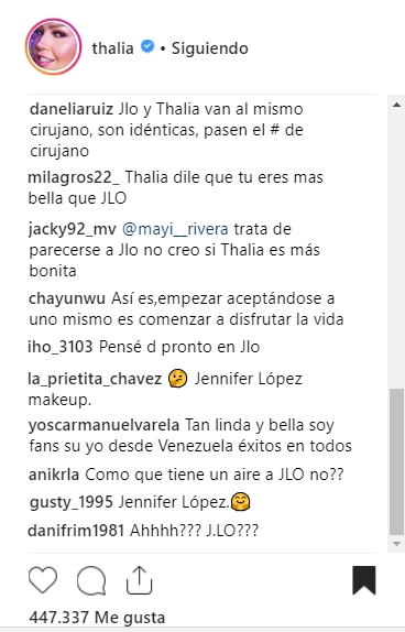 Sus fanáticos no dudaron en escribirle que en su fotografía se parecía a Jennifer Lopez.