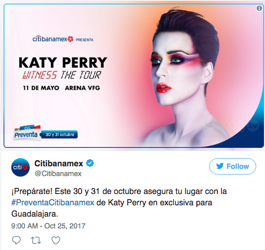 Pero para Guadalajara, la preventa iniciará el 30 y 31 de octubre para tarjetahabientes Banamex, y al público general el 1 de noviembre.