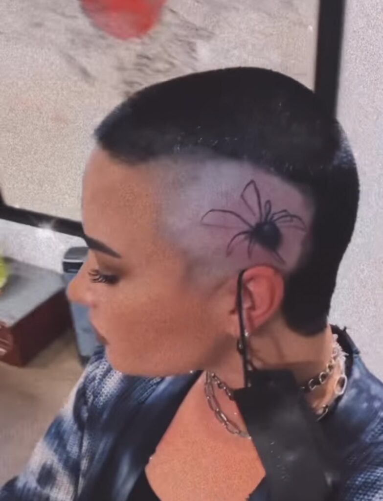 Recientemente Demi Lovato salió de rehabilitación por su adicción al alcohol y las drogas, después de raparse toda la cabeza a finales de mes ahora ha sorprendido a sus fanáticos tatuándose una enorme araña negra.