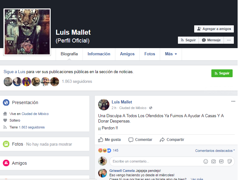 El día de hoy uno de los jóvenes implicados se disculpó por la misma plataforma, bajo el nombre Luis Mallet, donde aseguró que teme por su vida por tantas amenazas que ha recibido.