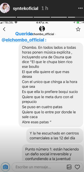 Por medio de sus historias de la misma plataforma, Aleks decidió responderle al productor asegurando que la música es explícita y citó algunos ejemplos con Ozuna, además enfatizó que se está confundiendo a la juventud.