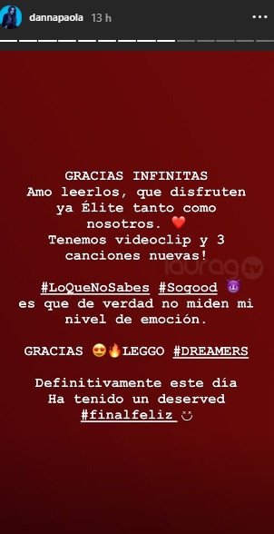 Este proyecto permitió un gran desarrollo de Danna, ya que también grabó tres temas para el soundtrack de la serie y este viernes lanzó “Final Feliz”.