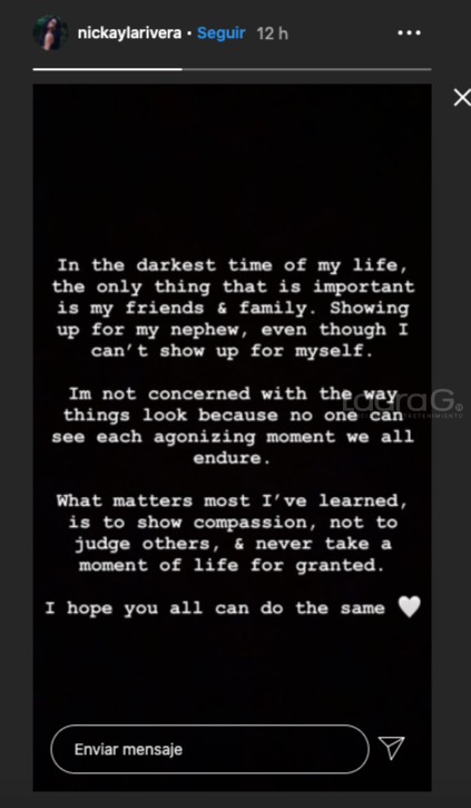 Por su parte Nickayla ha enviado un mensaje afirmando que lo único que le importa son sus amigos y familia en este momento oscuro de su vida y pidió mostrar compasión y no juzgar la vida de otros, mensaje que algunos fanáticos tomaron como una afirmación a una relación con Ryan.